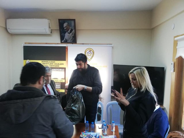 Zonguldak Maden Şehitleri Aileleri Yardımlaşma Derneği, Çocuklar Üşümesin projesi kapsamında 39 maden şehidi çocuğuna mont ve bot yardımında bulundu..