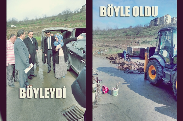 Önceki haftalarda gidilen Elmatepe Mahallesi Yeni Çağlar Sokakta yağmur sularının çevreye ve sokağa zarar verdiği için gidere bağlanmasını isteyen mahallelinin istediğini yerine getiren Su İşleri Müdürlüğü ilgili çalışmayı yaparak yağmur sularını 400 milimetrelik korige boruyla kanala bağladıklarını ve bu yolla da çevreyi kirleten yağmur sularının ve çamurun önlendiğini bildirdi.