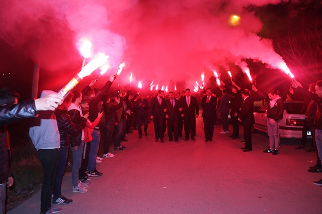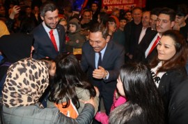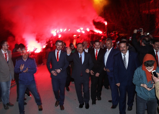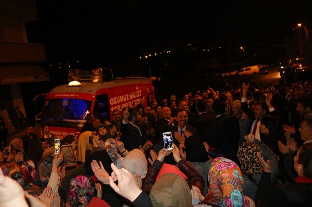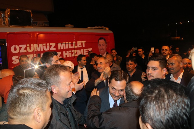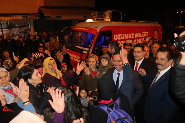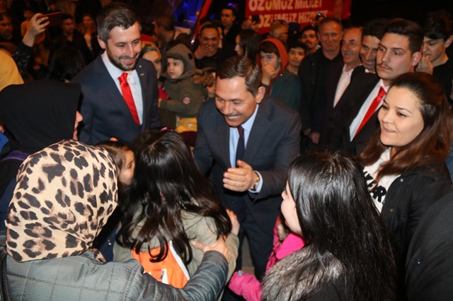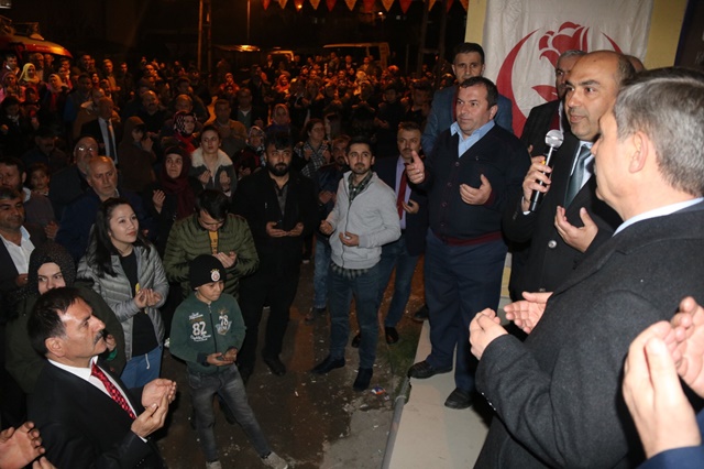 Ömerli’den sonra Ören Mahallesine geçen Başkan Uysal, burada konfeti ve havai fişek gösterileriyle karşılandı.