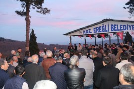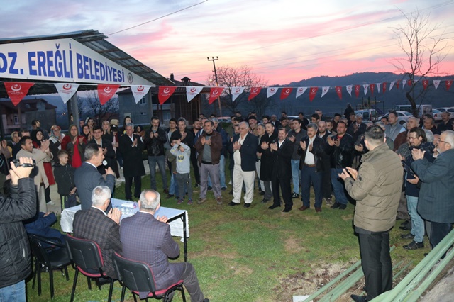 “Göreve geldiğimden itibaren hiçbir zaman aklımdan çıkmayan mahalle özellikle Yenimahalle tarafı Ören’dir. İlk asfaltı bu mahalleye döktüm. İmar sorunlarıyla ilgilendim. Buraları sel basıyordu, büyük bir menfez yaptık bu sorunu da çözdük. Yeni dönemde Ereğli’nin en iyi yerleşim yerlerinden biri Ören olacak. Size söz veriyorum; Bu gençlerin futbol oynayabileceği büyük bir futbol sahası ve spor alanları yapacağım. Ambulansın girmediği, itfaiyenin girmediği mahalle arasında sokağımız kalmayacak. Kimsenin ayağı çamura değmeyecek. Bütün kardeşlerim duraklarda beklerken ıslanmayacak, yeteri kadar durak koyacağız.