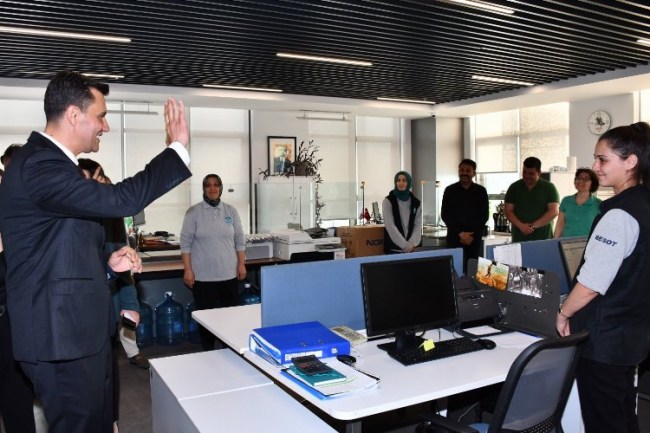 Büyükşehir Belediyesi personeliyle tek tek tokalaşan Başkan Zeyrek, çalışmalarında kolaylıklar dileyerek, hep birlikte Manisa'ya güzel hizmetler yapacaklarını belirtti.