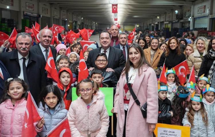 Manisa Büyükşehir Belediyesi, 12-18 Aralık tarihlerinde kutlanan Tutum, Yatırım ve Türk Malları Haftası kapsamında çocuklara yerli ürünlerin önemini aşılamak amacıyla Sebze ve Meyve Hali'nde özel bir etkinlik düzenledi.