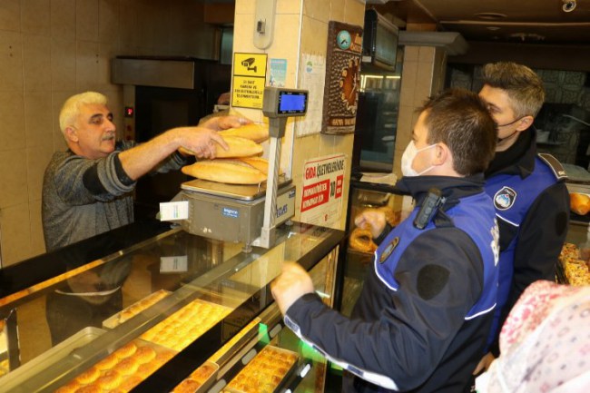 MANİSA (İGFA)- Manisa Büyükşehir Belediyesi Zabıta Dairesi Başkanlığı ekipleri, Tarım İl Müdürlüğü denetim ekipleri ile birlikte kent merkezinde ekmek üretimi yapan işletmeleri denetledi. Etiket, hijyen ve gramaj üzerine yapılan denetimlerde ekipler ekmekleri tartarak gramajlarının yönetmeliğe uygun olup olmadığını kontrol etti, raflarda yer alan ürünlerin etiketlerin kontrollerini yaptı, üretim yerlerindeki hijyen koşullarını denetledi.
