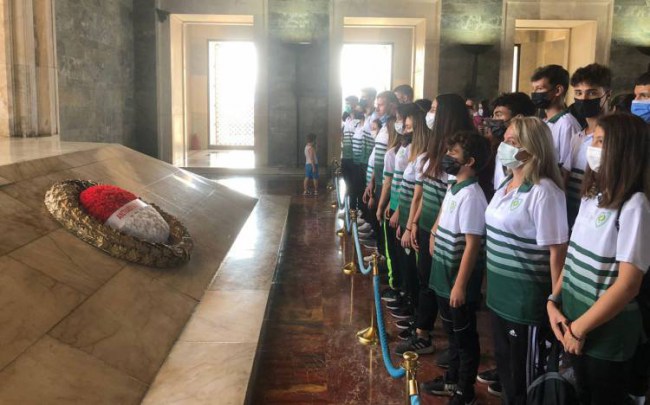 Kültür ve Sosyal İşler Dairesi Başkanı Fırat Özcan eşliğinde sporcular, Cumhuriyetimizin kurucusu, büyük lider Mustafa Kemal Atatürk’ün mozolesinde saygı duruşunda bulundu. Kültür ve Sosyal İşler Dairesi Başkanı Fırat Özcan, “Ata’mızın manevi huzurunda sporcularımız zeki, çevik ve ahlaklı bireyler olarak yetişeceklerine ve başarı için ter dökeceklerine söz verdiler. Bizler her zaman onların yanındayız. Geleceğimizin teminatı olan gençlerimize eğitimde, sporda ve sosyal alanda daima destek olacağız” dedi.