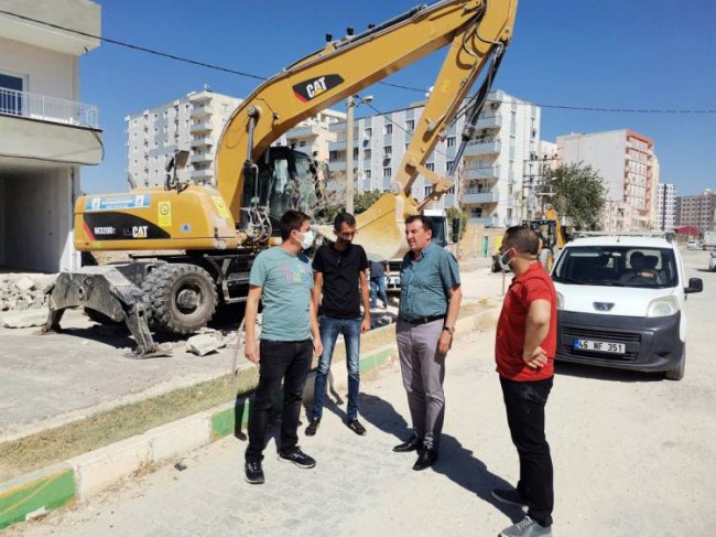 Fen İşler Daire Başkanı Cebrail Aslan ve Kızıltepe Kaymakamı ve Belediye Başkan Vekili Hüseyin Çam, çalışmaları başlatılan caddede incelemelerde bulundu.