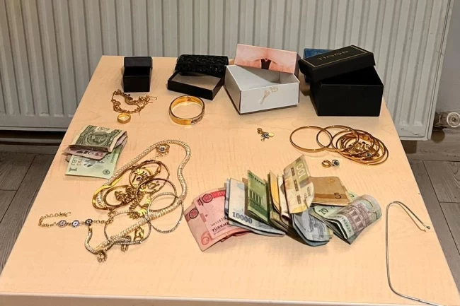 Maymuncuk yardımıyla evin kapısını açan şüpheliler evden 6 adet bilezik, 2 adet taş işlemeli kolye, 6 adet bileklik, 1 adet kelepçe tipi bileklik, "derya" ibareli 1 adet altın kolye, 1 adet altın zincir kolye, 1 adet altın yüzük, 1 adet altın küpe ile farklı ülkelere ait çeşitli miktarlarda koleksiyonluk kâğıt para alarak kaçtı. Ancak kaçış uzun sürmedi.