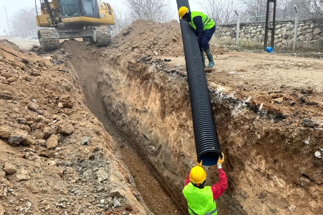 Malatya Büyükşehir Belediyesi Su ve Kanalizasyon İdaresi (MASKİ) Genel Müdürlüğü 6 Şubat depreminin ardından Akçadağ ilçesine bağlı Ören Mahallesi'nde inşa edilen köy konutlarının altyapı ihtiyaçlarını karşılamak için çalışmalarını sürdürüyor.