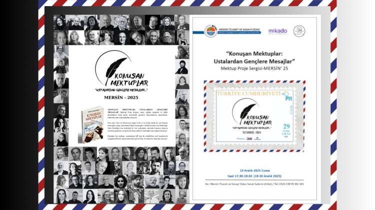 Mersin Ticaret ve Sanayi Odası, 30 Aralık'a kadar kültür-sanat, eğitim, akademi ve tıp dünyasının önde gelen isimlerinin genç kuşaklara rehberlik eden mektuplarından oluşan "Konuşan Mektuplar: Ustalardan Gençlere Mesajlar" projesinin sergisine ev sahipliği yapacak.