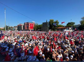 Miting alanı hınca hınç doluydu. Hatta mitinge giremeyenler vardı ve alana girişlerin önü, caddeler doluydu. İnsanlar heyecanlıydı. Atmosfer çok güzeldi. Miting alanındaki kitle inançla biran önce sandığın gelmesini bekliyor. Sandık geldiğinde AKP’nin gideceğini ve CHP’nin iktidara geldiğini görüyorlar. Alanda hukuksuzluğa, adaletsizliğe tepki vardı.