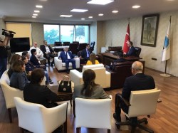 Zonguldak Ticaret ve Sanayi Odası Başkanı Metin Demir de ziyaret nedeni ile teşekkürlerini ileterek, seçim sonrasında hayata geçirmeyi planladıkları projelere ilişkin bilgi verdi. Metin Demir konuşmasında şunları ifade etti: “Sayın vekilim geçen dönemden devam eden tek vekilimiz olarak aslında bize Ticaret ve sanayi Odası’nı fikirleri ile ilgili geliştirdiği projeler ile ilgili en sıcak bilgiye sahip olan sizlersiniz. Biz bu dönem içinde, yani 27.Dönem meclisi içinde ilçe odalarımız ile birlikte Zonguldak özel sektörünü temsil eden 5 sanayi odası olarak 27.Dönem meclisimizde ortaklaşa çalışacağımız, birlikte takip edeceğimiz bir yol haritası oluşturmaya başladık aslında. Geçtiğimiz hafta biz Ereğli, Alaplı, Çaycuma ve Devrek TSO’larımz ile birlikte bir istişare toplantısı yaptık. İnşallah 24 Haziran’dan sora hazır olacak bir yol haritası ile karşınıza çıkacağız. Biz Zonguldak’tan 5 TSO olarak, Zonguldak özel sektörü olarak bu yeni dönemde, tabi nasıl bir hükümet yapısı oluşacak, nasıl bir meclis yapısı oluşacak bilemiyoruz ama biz yeni 5 milletvekilimiz ile birlikte inşallah Zonguldak özel sektörünü fikirlerini, projelerini, Zonguldak’ın geleceği ile ilgili vizyonu paylaşmış olacağız. Ve geçen dönem kısmen başarılı olduğumuz bir yakın görüşme trafiğimiz vardı ve özellikle size bu konuda müteşekkiriz. Mecliste her daim bizim fikirlerimize önem verdiniz ve ana muhalefet partisi olarak ta üzerimize düşeni her daim yatınız. Ve bu yeni dönemde de inşallah sayın vekilim bizim açımızdan, bizim bakış açımızla oluşturduğumuz bu yol haritasının takibi konusunda sizlerle çok yakın bir işbirliği, istişare içerisinde olmayı umut ediyoruz. Demokrasilerde bu seçim günleri bayram günleridir. Size Allah kolaylık versin ve çok yoğun bir çalışma temposu sizleri bekliyor. Köyler, mahalleler, kurumlar… Allah yardımcınız olsun, yonunuz açık olsun ve başarılar diliyoruz.