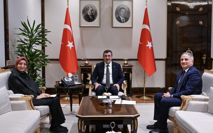 Cumhurbaşkanı Başdanışmanımız Sayın Saadet Oruç hanımefendi ile birlikte; Cumhurbaşkanı Yardımcımız Sayın Cevdet Yılmaz’ı makamında ziyaret ettik.