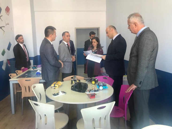 2019 yılında eğitim öğretim faaliyetlerine başlayan okulumuzda üç yıl gibi kısa bir sürede faaliyete geçirdiğimiz yenilikçi öğrenme alanları beğeni toplamaya devam ediyor. Yürüttüğümüz çalışmalar sonucunda dünyada 126, ülkemizde ise 26 okul arasına giren okulumuz Avrupa Okul Ağı'na entegre olarak bölgemizde bir ilki daha başarmıştır. Öğrenme alanlarımızda yürütülen çalışmaları yerinde incelemek isteyen Milli Eğitim Bakanlığı YEĞİTEK Genel Müdürlüğü Daire Başkanımız Sayın M. Hakan BÜCÜK, İlçe Milli Eğitim Müdürümüz Sayın Harun AKGÜL, eTwinning UDS Sorumlusu Sayın Ertan KOCABAŞ ve FCL Türkiye ekibinden Büşra SÖYLEMEZ ile Nevzat ÜNSAL okulumuzu ziyaret etmişlerdir.
