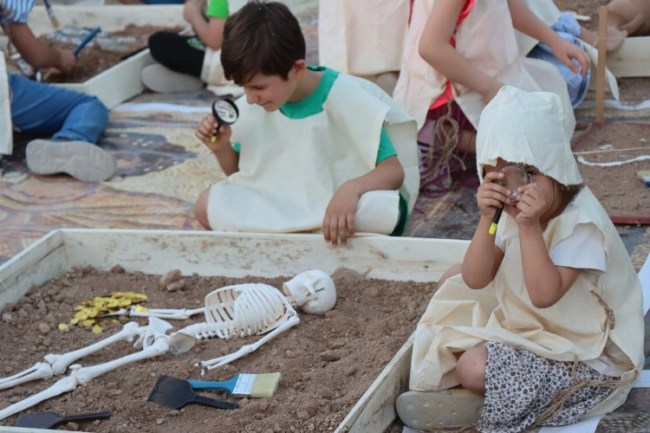 çocuklar kendileri için hazırlanan yapay kazı alanında Arkeolojik kazının tüm süreçlerini deneyimledi.