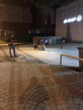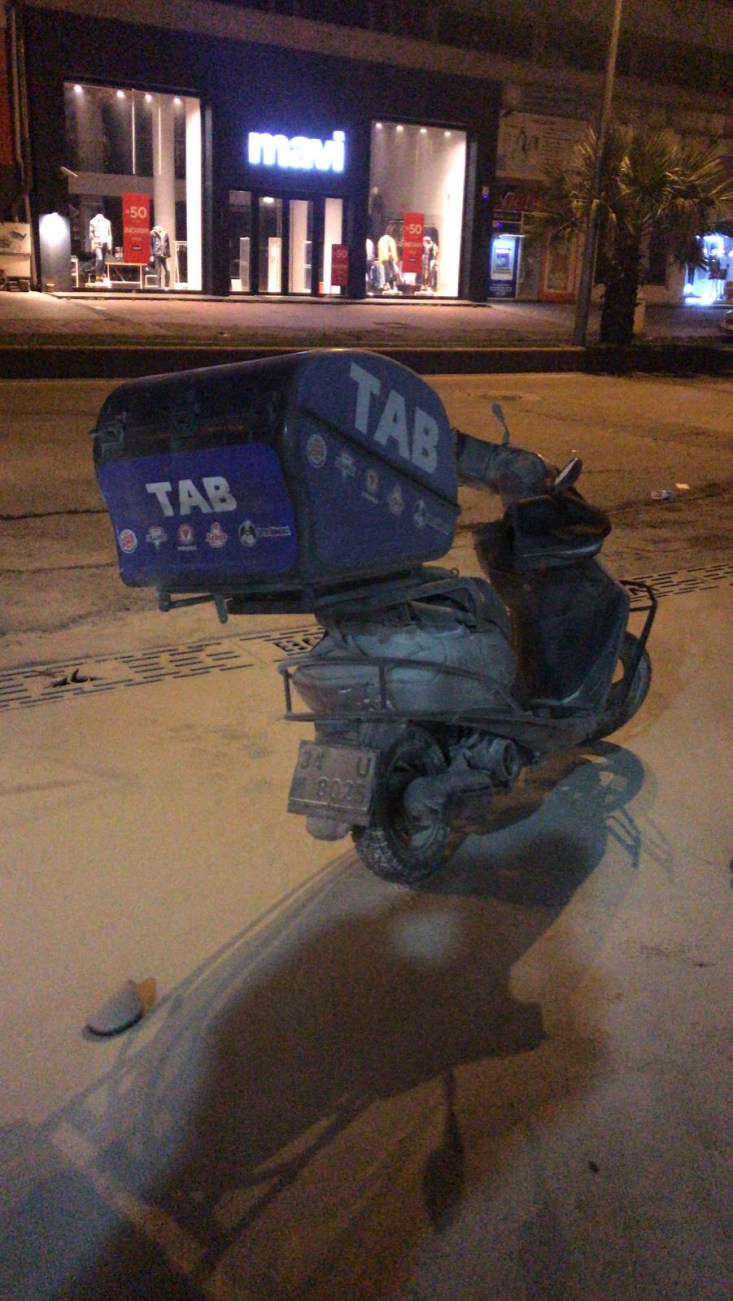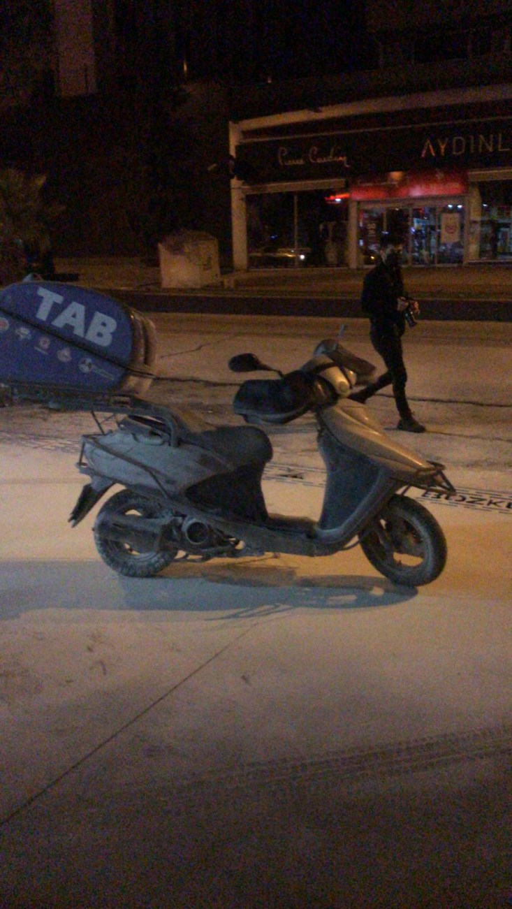 Kuryenin motorsikleti petrol ofisi çalışanları tarafından söndürüldü.