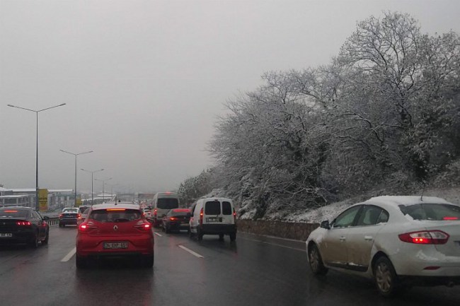 Bursa'da dün gece başlayan sabaha karşı etkili olan kar yağışı Mudanya-Bursa karayolunda seyir halinde olan araçları da yollarda olumsuz etkiledi.