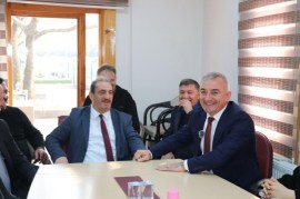 Heyet DTO’nun ardından Kdz. Ereğli Gazeteciler Derneği Başkanı Şafak Erel ve Yönetimi’ni ziyaret etti. Seçime kuzeni Murat Sesli ile girmeye mecbur bırakıldıklarını, kanunsuz hukuksuz hiçbir şey olmadığını vurgulayan Kdz. Ereğli önceki dönem Belediye Başkanı Murat Sesli konuşmasında; “Basın bizim için çok önemli. İnşallah Ereğli’ye hizmet ederken sizlerin de bizlere büyük katkısı olacak. Arkadaşlarımızla beraber bir yola çıktık, projelerimizi hazırladık. Seçimleri alacağımıza inanıyorum. Yapılanlar Ereğli için olacak, kimse şahsına hiç birşey istemiyor. Ereğli için en güzeli olsun istiyoruz. Bir yarışa girdik, seçim dostluk içinde geçsin. Hepimiz dostuz. Birbirimizin yüzüne bakamayacak duruma gelmeden geçsin. Şafak abi çok yetenekli bir futbolcuydu. Biz i Kdz. Ereğli Belediyespor’u Trendyol 1. lige çıkartmak için mücadele edeceğiz. Futbolu sevmek başka, bilmek başka. Yöneticilikte başka, yönetmek de başka. Ereğli Belediyespor yönetiminde topa ayağını vurmayan arkadaşlarımız var, maça çıkmayan arkadaşlarımız var. Hali ile başarı gelmiyor. Oraya bilenleri getireceğiz. Çok merak edilen bir soru var; oda iki Murat Sesli. Benim cezam ile ilgili bir sıkıntı yok sadece seçime girmem ile alakalı bir sıkıntım var. Benim ticaret yapmama, yurt dışına çıkmama, iş yeri açmama hiç bir engel yok. Bununla ilgili 3 ay önce Zonguldak’a başvuru yaptık. Maalesef siyaset adalete karıştı, yeniden yargılanmama mani oldular. Durum böyle olunca haksızlığa uğradığımızı iddia etmiyorum, net söylüyorum: Haksızlığa uğradık. Bizde böyle bir yol seçmeye mecbur kaldık. Girmemizde hiçbir hukuki engel yok. Murat Sesli olaraktan seçimi de alıyoruz. Mazbatayı aldıktan sonra benim belediye de herhangi bir makama atanmamda hiçbir kanunsuz olay yok, engel de yok. Belediyeyi ekip olarak yönetmeye başlıyoruz. Ben miting yaptım, mitingde bana izni kaymakam verdi. Mitingde yeri belediye tahsis etti. Mitingde önlemi emniyet aldı. Otobüsümüz 1,5 aydır geziyor. Bunlar kanunsuz olsa devlet adama bir adım bile attırmaz. Pankartlarımız asılıdır. Bundan önce Cumhurbaşkanımız Sayın Recep Tayyip Erdoğan’a ‘muhtar bile olamaz’ diyorlardı. Kendisi de belediye başkanı iken görevden alındı, benim gibi. 2002 yılında AK Parti kurulup seçimlere girdiği zaman Abdullah Gül Başbakan oldu. Tayyip Bey içinde Siirt Milletvekili istifa ettirilerek, Siirt Milletvekilinin yerine milletvekili seçildi. Geldi başbakanlığı aldı. Oldu mu? Oldu. Biz ilkleri başaracağız. Seçimi alarak Türkiye tarihine geçeceğiz. Haksızlığa karşı geldiğimiz için biz adayız. Bize yapılan adaletsizliğe karşıyız. Siyaseti adalete karıştırdıkları için aday olduk. Biz iki tane Murat Sesli değiliz, 31 tane Murat Sesli var. Murat Sesli burada, bize cephe almalarına gerek yok. Yapacaklarını anlatsınlar. Kim ne yaparsa yapsın, bizde yapacaklarımızı anlatıyoruz” dedi.