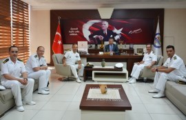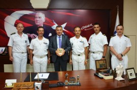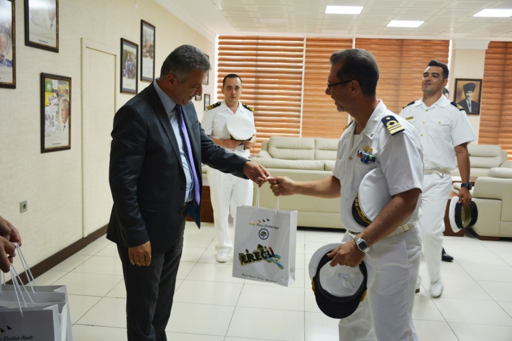 Karadeniz Bölge Komutanlığı Limanı’nda demirleyen NATO görev gemilerinin komutanlarından oluşan heyet Kdz. Ereğli Belediyesi’ni ziyaret etti. Belediye Başkan vekili Gökhan Günay, Yerel Yönetimler Çalıştayı için şehir dışında bulunan Başkan Halil Posbıyık’ın selam ve sevgilerini ilettiği heyete ziyaretin anısına çeşitli hediyeler takdim etti.