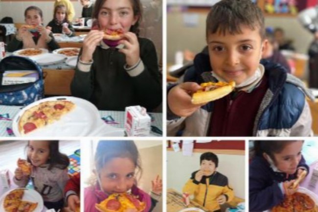 Murat KARAKAYA (NİĞDE İGFA) - Umut Hep Bizimle Sosyal Yardımlaşma Platformu, Niğde'nin Çiftlik ilçesi Şeyhler Köyü'nde bulunan Şehit Hamza Baykan İlkokulu ve Ortaokulu öğrencilerine pizza ikramında bulundu.