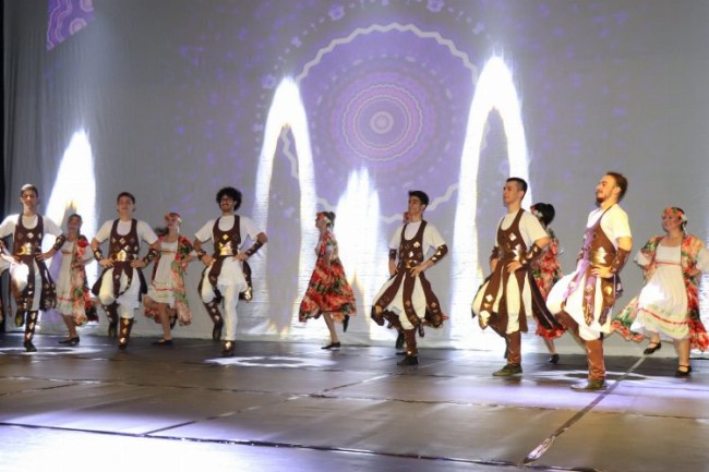Sahne İzmit Halk Dansları Topluluğu tarafından bugün Kocaeli Kongre Merkezinde sergilenen Nikomedia Dans Gösterisi izleyenlerden tam not aldı