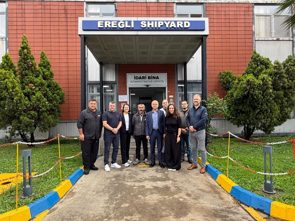 Sonrasında Tersaneler Bölgesi’ne giderek bölgede faaliyet gösteren Ereğli Gemi Tersanesi’ni ziyaret eden delegasyon, firmanın üretim alanları ve kapasitesi hakkında yetkililerinden bilgiler edindi.