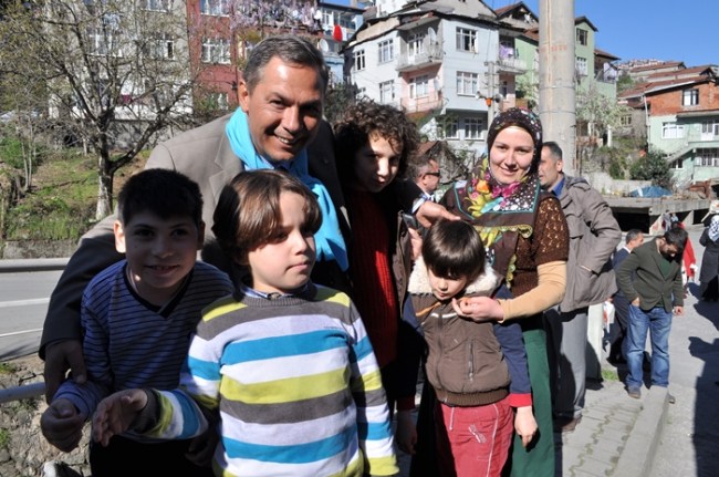 Uysalın mahallelerine ziyarete geldiği duyan vatandaşların evlerinin camlarına çıkıp, Uysalı selamlaması dikkatlerden kaçmadı..