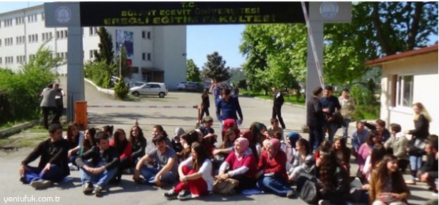 Bülent Ecevit Üniversitesi (BEÜ) Ereğli Eğitim Fakültesi 4. sınıf öğrencileri mezuniyet törenlerinin merkeze alınmasına tepki gösterdi.