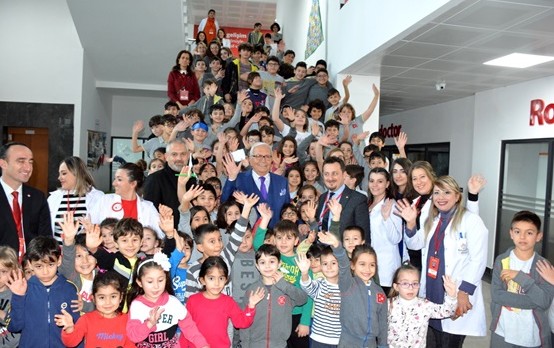 Okul binasında ilköğretim öğrencileri tarafından alkış ve sevgi gösterileriyle karşılanan Başkan Posbıyık, kendisine gösterilen ilgi karşısında duygusal anlar yaşadı. Çevresini koşarak saran öğrencilerle kucaklaştı, hatıra fotoğrafları çektirdi.