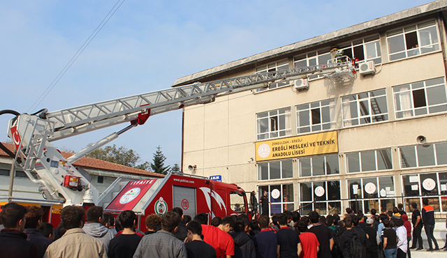 Hafta içinde Merkez Anadolu Lisesi, Ereğli İlkokulu, Erdemir Güzel Sanatlar Lisesi ile Mesleki ve Teknik Anadolu Lisesi’nde öğrenim gören toplam 2 bin 406 öğrenciye Afetlere hazırlık, Afet sırasında hareket tarzı, Yanma - Yangın Bilgisi, Yangın Söndürme Cihazı kullanımı konuları, teorik ve pratik olarak anlatıldı.