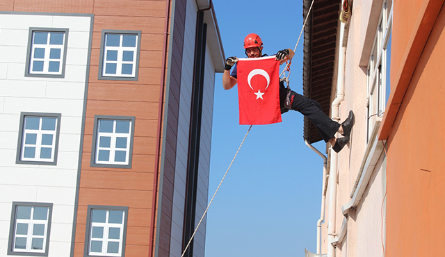 Tatbikatlar kapsamında merdivenli araç ile yaralı tahliye, sedye ile yaralı tahliye ve kurtarma halatları ile yaralı tahliye eğitimi verildi.