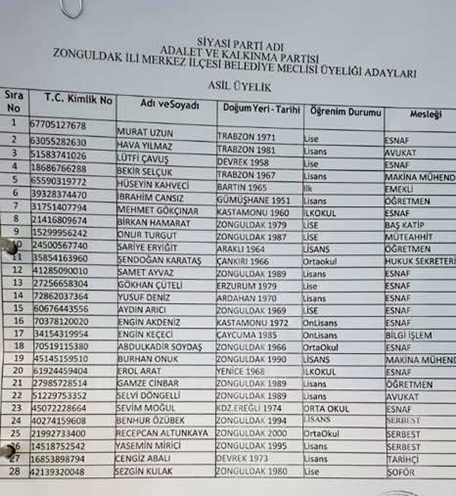 AK Parti Zonguldak Belediye Başkanı adayı Dr. Ömer Selim Alan, belediye meclisi listesini il seçim kuruluna teslim etti..
