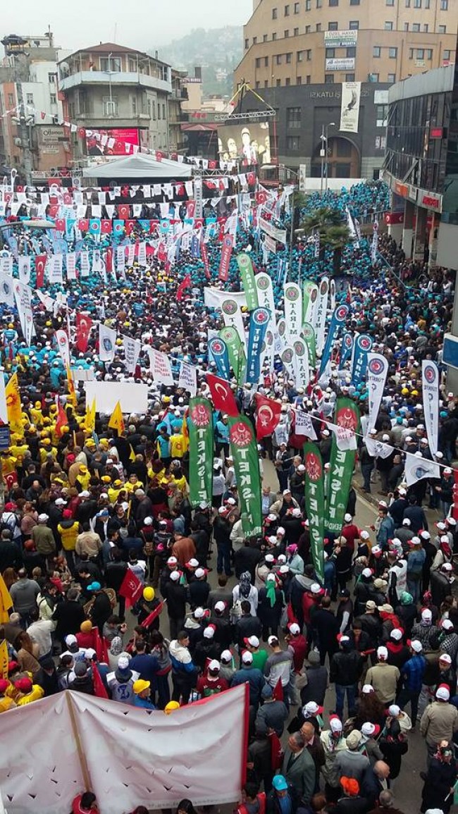 Tarihinde ilk kez Türk-İşin Zonguldakta Genel Maden İşçileri Sendikasının (GMİS) ev sahipliğin de düzenlediği 1 Mayıs Yürüyüşü ve Mitinginde on binlerce emekçi Zonguldaka sığmadı.