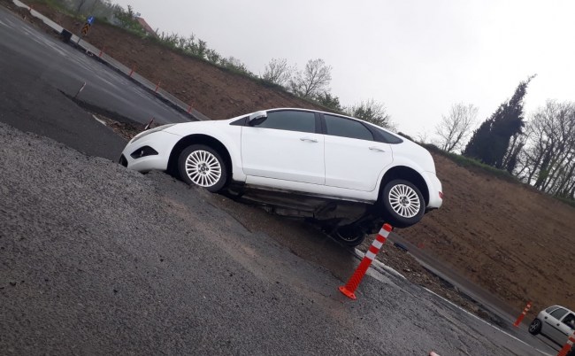 Alınan bilgiye göre; yol yapım çalışmalarının devam ettiği Ören mahallesi yolayrımında araç şoförünün bir anlık dalgınlığı sonucu 67 TG 452 plakalı araç bankete düştü..
