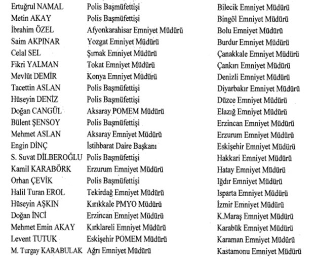 İlk ataması yapılan il emniyet müdürü sayısı ise 37 oldu. İçişleri Bakanı onayıyla ise Emniyet Genel Müdürlüğü bünyesindeki 24 daire başkanı merkeze alınırken, ilk ataması yapılan daire başkanı sayısı ise 31 oldu.