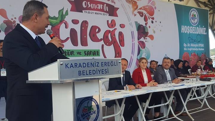 Çetinkaya’nın ardından konuşan Kdz.Ereğli Belediye Başkanı Hüseyin Uysal da Çetinkaya’nın sözlerini destekleyerek, "Osmanlı Çileğine çok daha fazla önem vermeliyiz. Belediye olarak sorumluluğumuzun ve görevimizi biliyor ve en iyi şekilde yapmaya çalışıyoruz. Biz göreve geldikten sonra Osmanlı Çileğinin yeteri kadar anımsatılmadığını, hatırlatılmadığını üzüntüyle gördük. O günden beri belediyede, dernekte, tarımda ayrı çalışıyoruz. Ama yeterli değil. Çünkü Osmanlı Çileği yöremize özel. Kokusu ve tadıyla buraya özel. Bugünden sonra Osmanlı Çileği konusunda adım adım değil, koşarak ilerlememiz lazım”, dedi..
