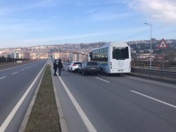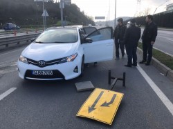 Kdz.Ereğli’de Üst köprü girişinde meydana gelen trafik kazasında, çalışma tabelalarını fark etmeyen ve aniden duran otomobile arkadan gelen sürücü çarptı.