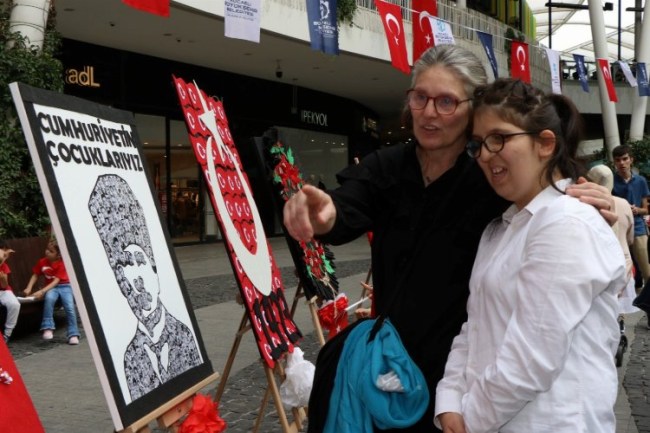 Cumhuriyetimizin 100. yılı için oluşturdukları sanat eserlerini sergileyen Cemil Meriç Engelsiz Yaşam Merkezi özel öğrencilerinden Ahmet Sayel, kardeşinin kendi yazıp yarışmaya katıldığı ‘Cumhuriyet 100 Yaşında' adlı şiirini okuyarak, misafirlere küçük bir şiir dinletisi sundu.