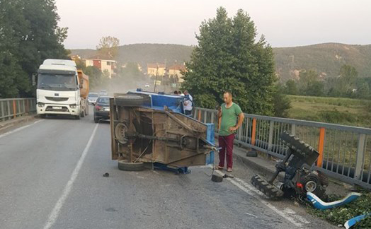 Olay ilçeye bağlı Aydınlar köyünde meydana geldi. Alınan bilgiler göre Yiğit Akcan'ın (23) kullandığı halşk dilinde patpat olarak adlandırılan tarım aracı ikiye bölündü. Kazada yaralanan sürücü Yiğit Akcan'ın yardımına koşan vatandaşlar sağlık ekiplerine haber verdi.
