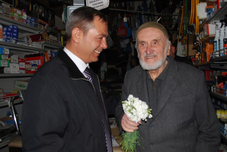Başkan Uysal daha sonra İbrahim İzmirlioğlunu da ziyaret ederek bir süre sohbet etti.