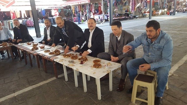 Pazaryeri esnafıyla simit-keş keyfi..