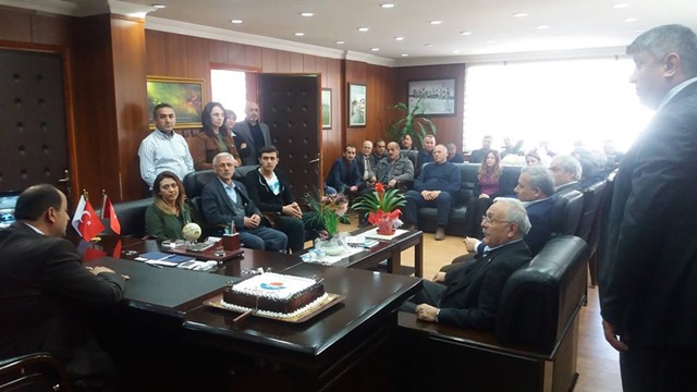 Başkanlarını makamında ziyaret eden personel, hem başkanlarının 4. hizmet yılını kutladılar, hemde Regaip kandilini kutladılar.