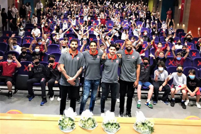 Öğrencilerin sorularına samimiyetle cevap veren sporcular, öğrencilere hayat boyu unutulmayacak tavsiyelerde bulundular. Söyleşiye katılan oyunculardan Murat Göktaş, "Benim için en önemli şey arkadaşlık." diyerek, spor sayesinde, yeni arkadaşlar edindiğini, daha disiplinli, daha programlı bir hayatının olduğunu ve her şeye rağmen zorluklarla başa çıkabilmeyi öğrendiğini anlattı. Göktaş; "İyi bir takım olabilmek için sevmek, arkadaş olmak ve işinizi tutkuyla yapmak gerekiyor. Eğer bunu başarırsanız kariyerinizde de başarılı olursunuz." dedi. Karşıyakalı oyunculardan Mahir Ağva ise öğrencilere yaptığı konuşmada genç sporcuların inandıkları ve mücadele ettikleri spor branşında asla pes etmemeleri gerektiğini söyledi. Maçta yaşanabilecek bütün olumsuzluklara rağmen güçlü ve kararlı olmanın kazanmak için ne kadar önemli olduğunu vurguladı. Yoğun ilgiyle izlenen söyleşi sonunda basketbolcular ile hatıra fotoğrafı çektiren öğrenciler, keyifli dakikalar yaşadı.