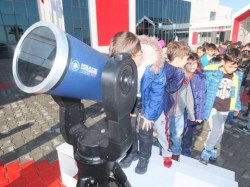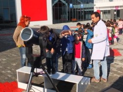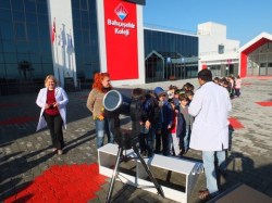 Öğrenciler ile söyleşi şeklinde geçen sunumdan sonra okul bahçesinde teleskop ile Güneş gözlemi yapıldı.
