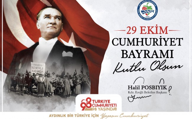 Kdz. Ereğli Belediye Başkanı Halil Posbıyık, Cumhuriyetin kuruluşunun 98. Yılı nedeniyle kutlama mesajı yayımladı.