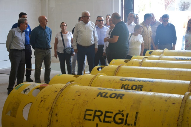 Kdz. Ereğli Belediye Başkanı Halil Posbıyık, CHP ve AK Parti grubu belediye meclis üyeleriyle birlikte İçme Suyu Arıtma Tesisi’nde incelemelerde bulunup brifing aldı. Tesisin Ereğli’ye kazandırılması için büyük mücadele verdiğini ve bedel ödediğini söyleyen Posbıyık “Gerekli idari ve yapısal tüm tedbirler alındı. Halkımız musluklarından gönül rahatlığıyla su içebilirler” dedi.