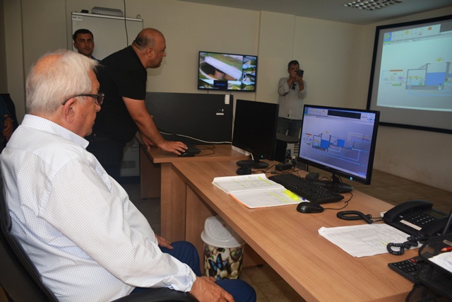 Belediye başkan yardımcıları ve ilgili daire yetkililerinin de hazır bulunduğu gezide Su ve Kanalizasyon İşleri Müdürü Deniz Koca, tesis hakkında brifing verdi.