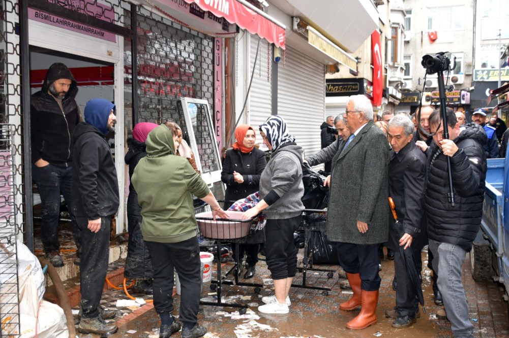 Kdz.Ereğli Belediye Başkanı Halil Posbıyık, afetin ardından CHP Genel Başkan Yardımcısı Deniz Yavuzyılmaz ve Milletvekili Eylem Ertuğrul ile birlikte işyerleri su altında kalan çarşı esnafına ve büyük zarar gören balıkçı esnafına geçmiş olsun ziyaretinde bulundu. Afette belediye olarak ta büyük zarar gördüklerini belirten Başkan Posbıyık, “Yaralarımızı el birliğiyle saracağız” mesajı verdi.