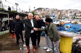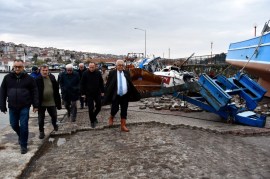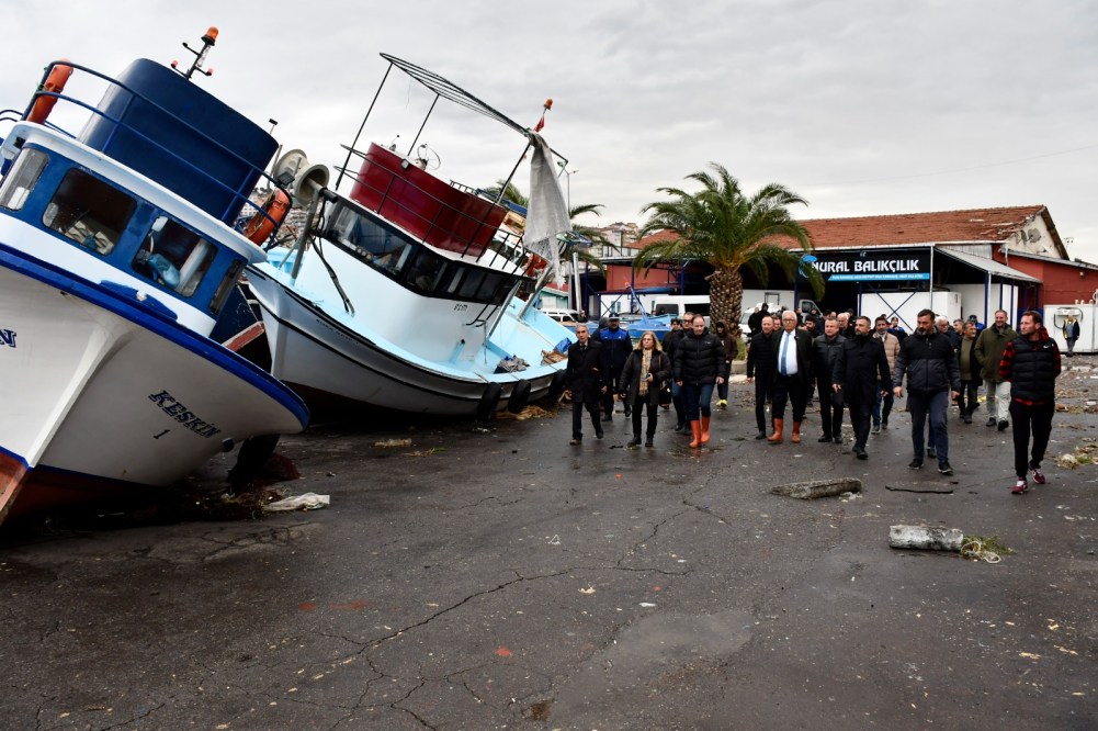Heyet, fırtınada büyük zarar gören sahil bölgesindeki incelemelerinin ardından balıkçı barınağına geçerek Su Ürünleri Kooperatifi yöneticileri ve balıkçı esnafına geçmiş olsun dileklerini iletti.