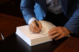 Başkan Aygün ziyaret anısına Doç.Dr.Yusuf Erbay ile birlikte kaleme aldıkları “Türkiye’de ve Avrupa’da Yerel Yönetimler” kitabını, “Efsane başkanım Halil Posbıyık’a” yazarak hediye etti.