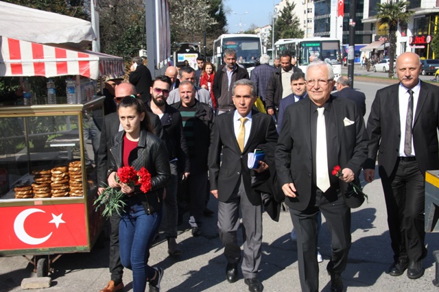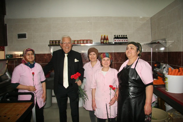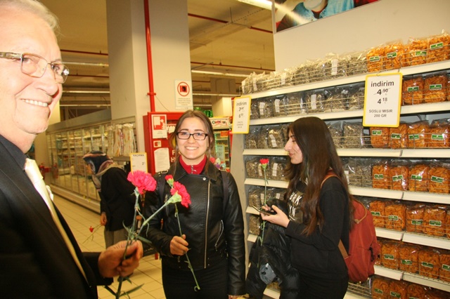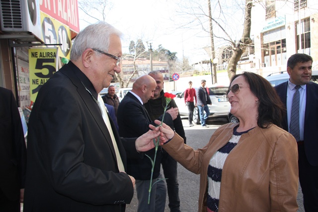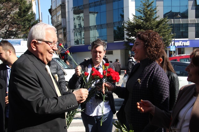 CHP Ereğli Belediye Başkan Adayı Halil Posbıyık, burada da bütün bayanlara günün anısına karanfil dağıttı.