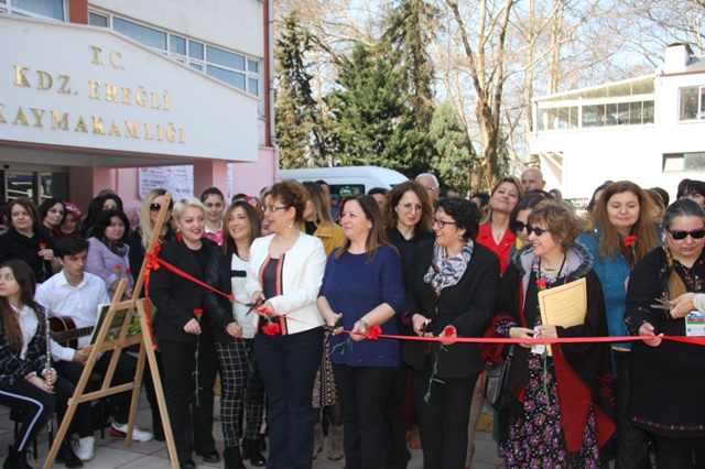 Ereğli Kaymakamı İsmail Çorumluoğlu’nun da katıldığı Resim Sergi açılışını, Kaymakamlık binasında görev yapan kadın çalışanlar gerçekleştirdi.